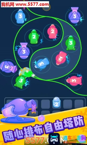 玩法上,下载打开后,初始金币有限,完成关卡挑战积累金币解锁购买炮塔。找数字与颜色匹配的炮塔合成提升属性。根据战场形势拖动炮塔到最佳攻击位置,阻止敌人到终点。炮塔等级越高越厉害,击败 Boss 有机会得新炮塔。
