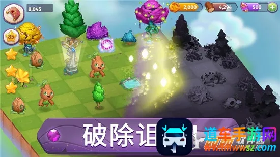 2. 花园遭受邪恶诅咒,玩家需击退迷雾、破除魔咒,拯救生灵,还给它们美好家园。