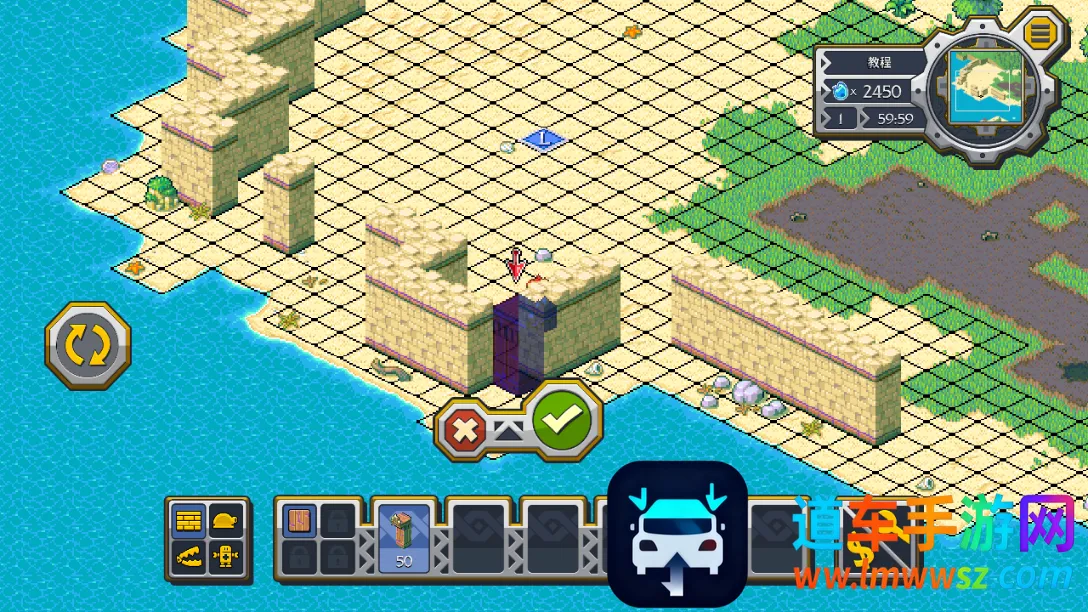 8、如果点击【√】没有反应,那就意味着没有放好,可以点击左方的按钮对围墙进行旋转,然后再点击【√】;