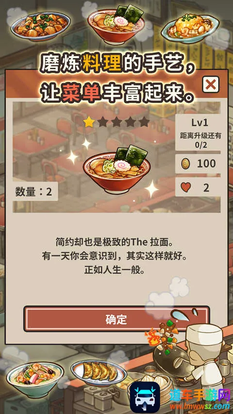 《众多回忆的拉面食堂》是一款充满温情的模拟经营类手游,值得下载尝试。游戏采用复古怀旧的像素美术风格,搭配舒缓治愈的背景音乐与细腻动人的剧情发展,为玩家营造出一段温暖人心的游戏旅程。你将扮演一名协助者,帮助一对年迈的夫妻打理他们的小店,从准备食材到完成料理,一一满足顾客的点餐需求,赚取收益,并用积攒的金币逐步升级厨房设备添置新式装饰,让这家小店焕发出新的生机,吸引更多食客光临。游戏中精心设计了60余种风味各异的料理选项,涵盖拉面炒饭饺子等经典日式美食。每位顾客都有独特的口味偏好,你需要根据他们的订单精准制作餐品,在服务中提升彼此的好感度,进而解锁隐藏在他们身后的感人故事。每一道菜肴不仅承载着味觉的记忆,也串联起人与人之间的情感纽带。如果你渴望体验一段慢节奏富有温度的经营之旅,这款游戏绝对不容错过。快来下载,开启属于你的温馨食堂经营之旅吧!
