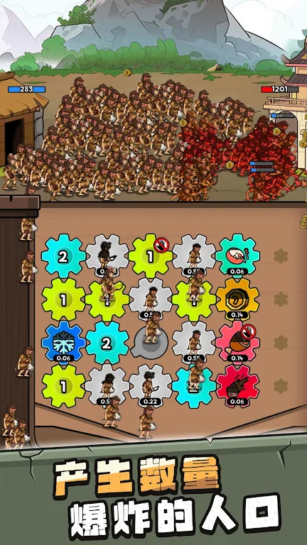3. 文明进化体验:告别远古部落靠刀斧的日子,推动部落时代进化,感受大炮导弹等现代战争的魅力。