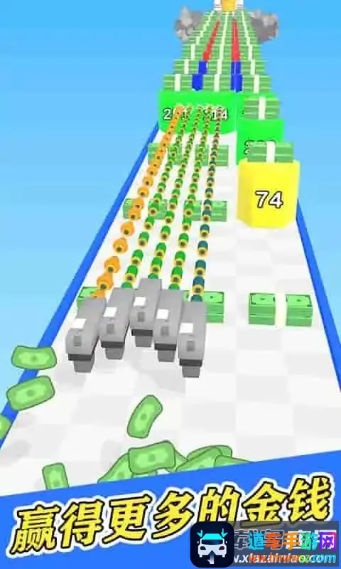合并子弹头是一款轻松有趣的跑酷游戏。玩家通过收集并合并小子弹,升级成更强大的型号以突破障碍,最终击败守关敌人。每个关卡开始时,你可以将子弹放置在特定格子中,并通过拖拽移动位置进行合成升级。成功到达终点后,你还能开启宝箱获得金币或新子弹类型等实用道具。