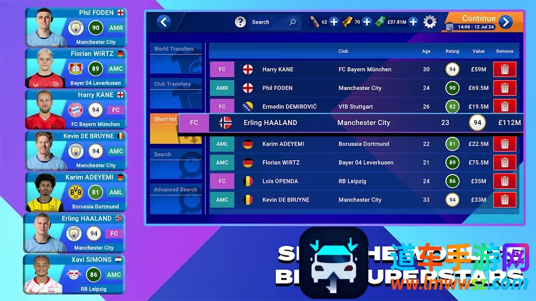 1. 组建梦幻球队:在现实转会市场中,从世界顶级球员里挑选心仪球员,打造属于自己的梦之队,转会选择全由玩家决定。
