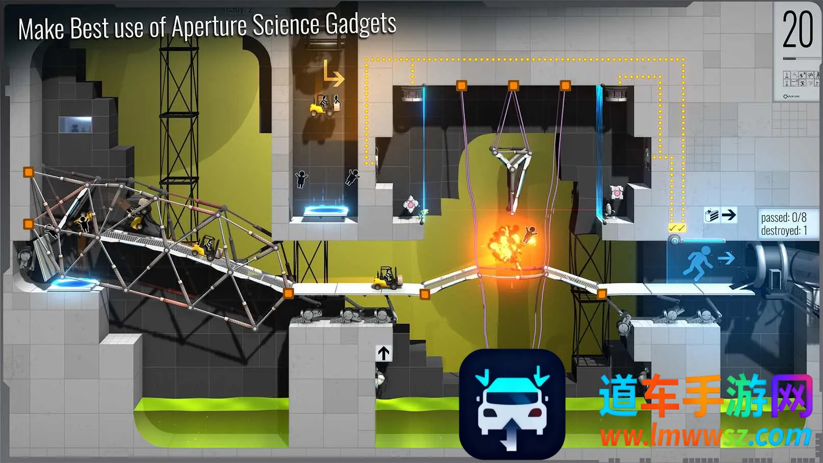 桥梁构造者:传送门安卓版将经典Portal与BridgeConstructor结合。在光圈科技实验室,利用传送门等工具,在60个测试室建造建筑,让班迪安全通过终点,避开障碍,还有GLaDOS引导,含GooglePlay游戏服务成就。
