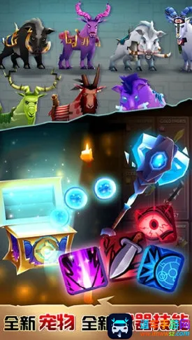 4. 独特宠物搭配:多个独特宠物并肩作战,拥有多种元素特性。如狼提升速度,魔龙提供强大攻击力,根据敌人特点与战局选宠物,增加胜算。