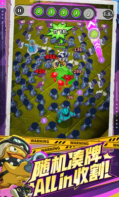 这是一款超带感的割草手游。它拥有3D画风,融合创新凑牌玩法,面对怪潮,你能边拾取数字球边打怪,凑齐特定数字球可让武器瞬间进化为超武形态,实现战力跃迁。无限购商店和大转盘让Build成型更快。单机玩腻了,还有3人抱团打怪、4人宝石争夺的多人竞技。创新凑牌玩法每局都好玩不重样,割草不止无脑平A,走位捡牌凑大招,商店无限购Build超武,能玩出N种花样。凑齐5个同数字球武器飞升,告别刮痧轻松反杀。末世走位虐BOSS,观察机制找破绽,利用技能武器搭配丝滑秒杀。3D超爽割草,特效沉浸,满屏怪物一招清。好友组团开黑,大转盘搏一搏,道具脑洞大开,万物皆可战斗,用离谱技能杀最多的怪,带来极致解压体验。