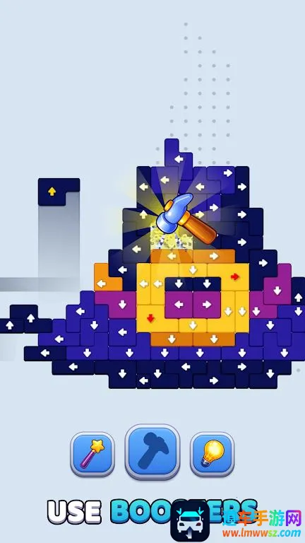 1. 拥有独特的方块点击消除机制,玩家通过点击带有箭头的方块,按正确顺序滑出,享受独特的游戏体验。