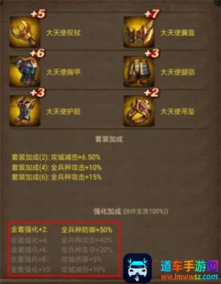 全身6件装备强化+6,则激活全套强化+6,以此类推。