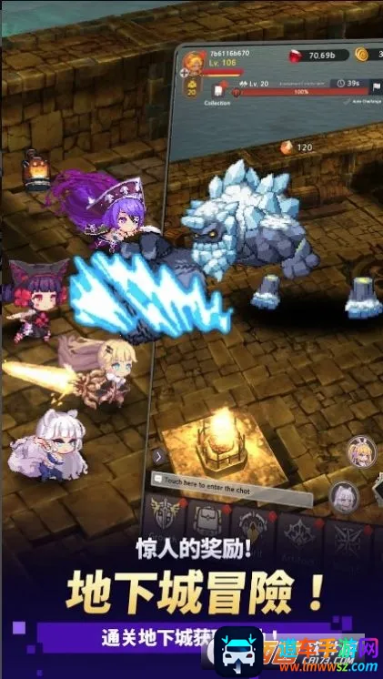 4. 游戏以魔幻世界为题材,是经典像素风RPG角色扮演游戏,带你在神秘大陆迷宫世界冒险,挑战各类敌人,获取财富名声并扩大领地。