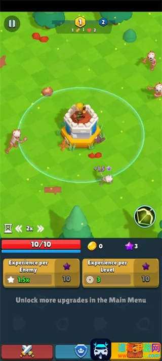 2、在这个魔法世界中,你需要不断的击败邪恶的怪物,并通过升级弓箭手的攻击伤害,击败更加强大的怪物;