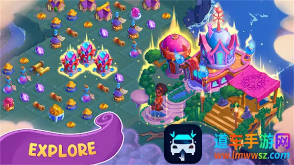 1. 独特合成建造玩法:可将三个及以上相同对象拖拽合成升级物品,用于修复小镇建筑、完成订单任务,如从岩石植物到魔杖神器都能合并,操作简单却充满策略深度。