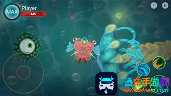 2. 以微生物为起点,在2D平面操作游戏,通过获取多样食物促进孢子成长,吞噬其他孢子获取新能力。
