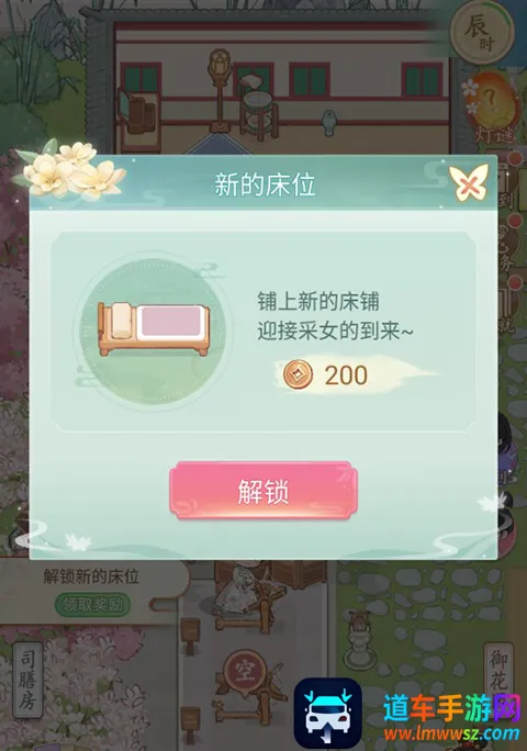 玩家点击床铺区域加号就可以新建一个床铺,迎接采女的到来。