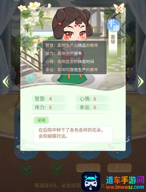 2、玩家可以点击采女查看信息来选择好采女。