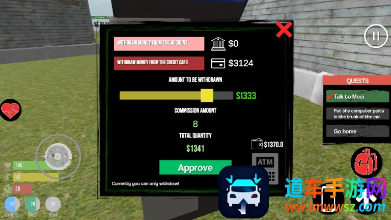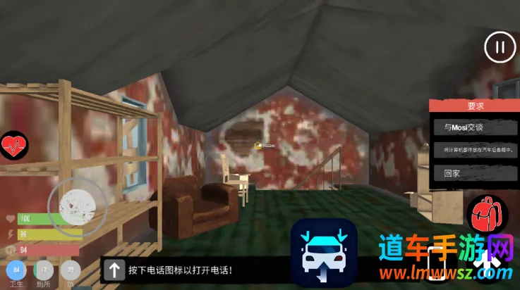 玩法上,点击新游戏开启旅程,左下角滑动按钮控制移动,右下角有电话、背包和跳跃按钮,滑动屏幕旋转视角。按任务提示,与角色交谈、获取装备等。要是开车回家找不到下车按钮,进入车上后向左滑屏幕,点击左侧车窗下黄色车门按钮就行。