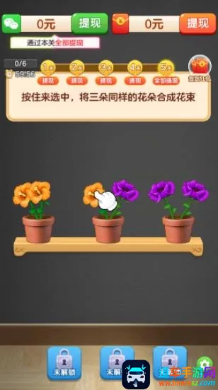 花开好运是海南云生网络技术有限公司打造的休闲红包消除游戏。结合鲜花与消除元素,关卡丰富多样,道具免费。操作简单,花瓶鲜花精美,完成任务可获丰厚奖励,还有排行榜,观看广告解锁道具。