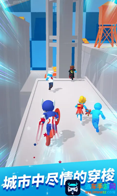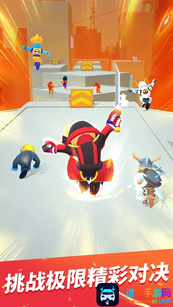 游戏的操作简单易懂,玩家通过滑动手指进行移动,遇到间隙时角色会自动跳跃,掉落屋顶时会自动攀爬,还可以进行翻墙等动作。成功到达终点即可获得胜利,获得的名次越高奖励也越丰富。