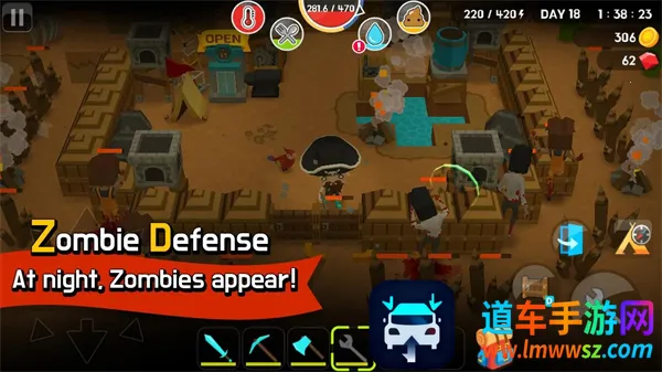 4. 多层防御构建:从基础木墙、捕兽陷阱,到自动攻击的木大炮、石大炮、铁大炮,再到功能型防御塔,打造专属生存堡垒,抵御夜间僵尸潮袭。