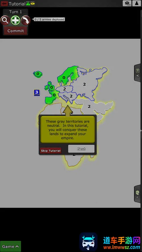 3、而周围灰色地带这表示中立,你需要做的就是征服这些土地,扩大你的帝国。