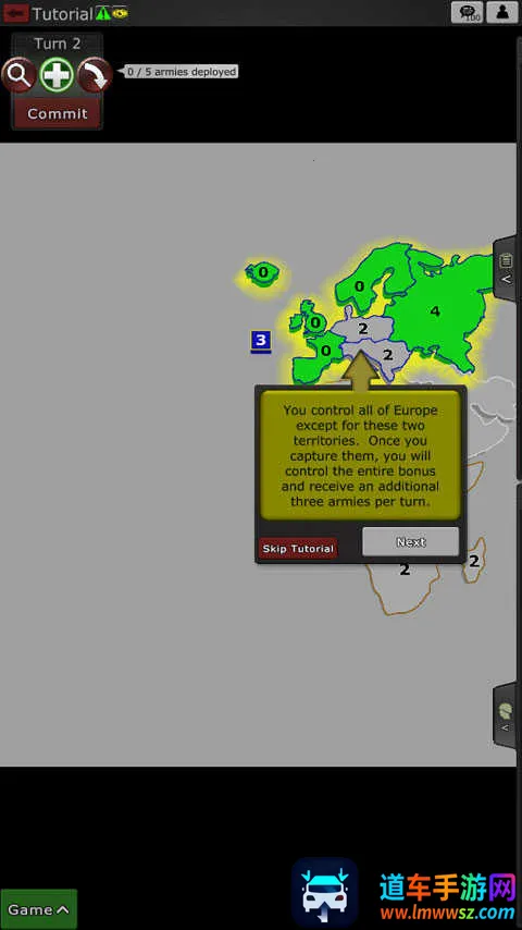 13、你控制了整个欧洲,除了这两个地区。一旦你占领了他们,你将控制整个奖励,并且每回合额外获得三支军队。后面就要靠玩家自行攻占所有的区域了。