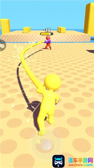 游戏关卡数量丰富,难度会随通关进程逐步提升。通过滑动屏幕控制橡皮人向对应方向伸长手臂出拳,即可实现远程击倒,率先击倒对手就能赢得胜利。对战结束后,玩家还能自动获得金币奖励。