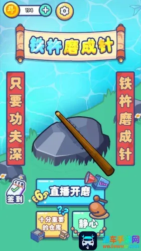 铁棒磨成针2026最新版本是休闲娱乐游戏,基于李白故事设定。玩家直播磨针汇报进度,无广告环境清爽。有多样磨针工具,新玩法敲木鱼。关卡难度递增,玩法丰富,能获成就感,打磨耐心。