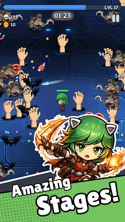 这是一款极具挑战性的生存冒险游戏。它的游戏机制十分独特,玩家要在随机生成的环境中应对不断涌现的敌人波次,利用自动攻击机制并寻找最佳战斗策略。技能与升级系统丰富,能积累经验解锁强力技能,通过技能打造独特角色构建提升生存能力。多样化的关卡设计,每个关卡环境主题和敌人种类都不同,随着关卡深入挑战更严酷。游戏进程是渐进挑战,积累经验可解锁永久升级。移动和操作优化得很流畅,适合随时玩。每次挑战都是全新考验,高重复可玩性和递增难度吸引玩家不断挑战自我,感受生存快感,书写生存传奇。