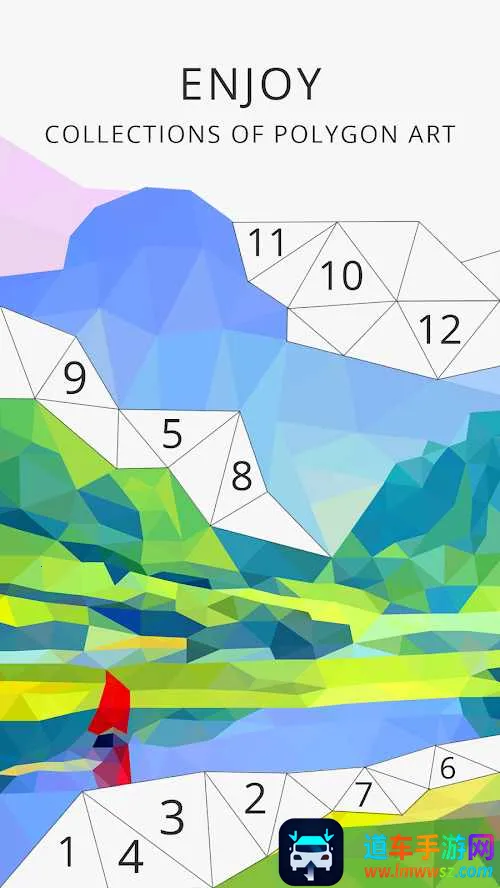 2. 趣味匹配玩法:通过将彩色多边形与数字区域匹配,呈现精美多边形画作。