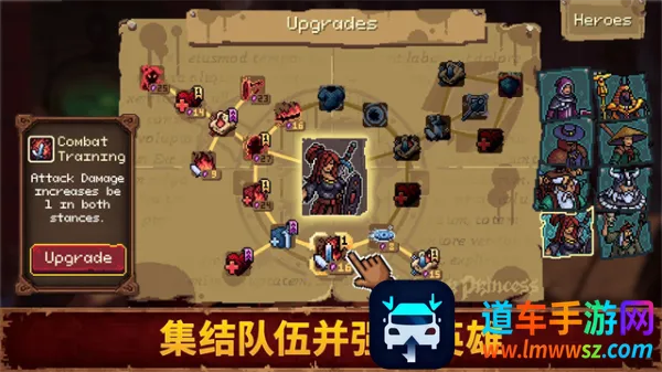 2、英雄各具特色,拥有独特攻击与技能,如战士近战爆发、巫师群体魔法伤害。