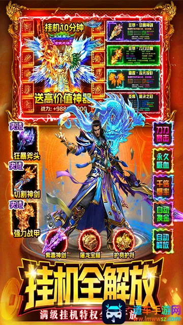 3、智能挂机:拥有挂机特权,自动拾取、自动回收、智能巡航锁怪,离线也能持续获得装备、灵符、养成材料,解放双手轻松刷怪。