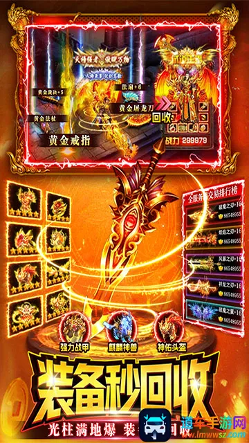 2、高爆率:全图高爆,无暗坑,小怪也能爆终极,任意击杀BOSS,装备光柱铺满全屏,八卦装备、灵宝、圣兽材料全靠打。