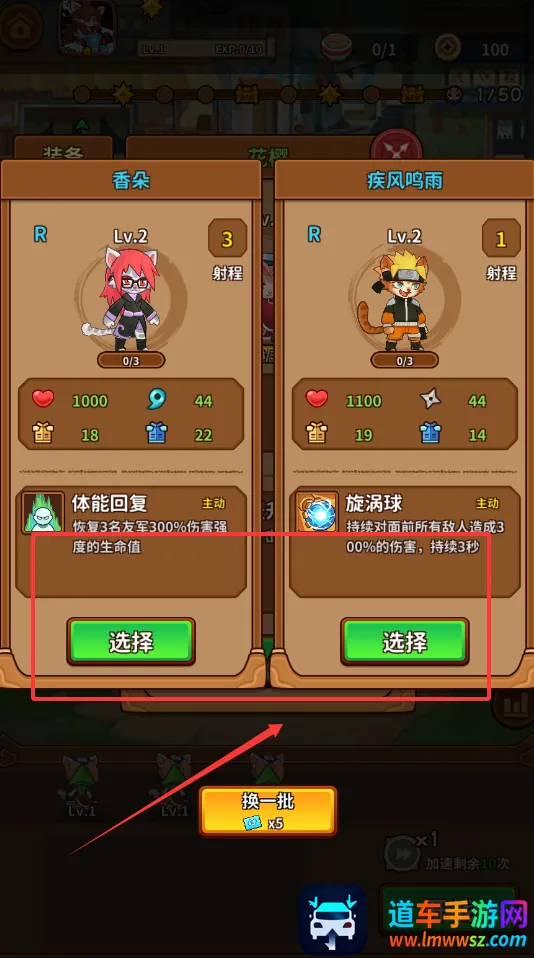 1、在游戏初期需要着重收集相同角色进行合成进化,通过集齐三个相同忍者能够实现升星突破。