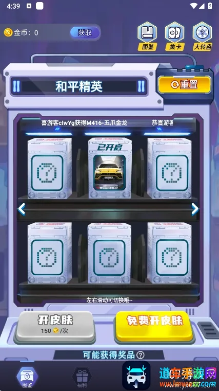 1、在本站内下载与安装并打开软件,点击“签到”,每日领取金币;连续登录30天解锁超级大疆宝箱,概率获得稀有皮肤。