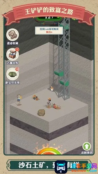 1. 丰富玩法体验:不仅能与王铲铲和村民探索地下未知世界,享受轻松挖掘玩法,还能升级装备、运输队、仓储中心提升效率,更有展览宝物获取收益等多样玩法。