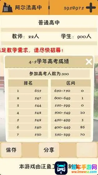 这是一个以不破产的前提下提升声望的游戏,教师声望要特级教师才给,高考就是学生考上顶级会有,(素质与考上国外大学有关,社团全点,感觉社团一点也不影响奥赛,后期点不点都是2个一等奖)。