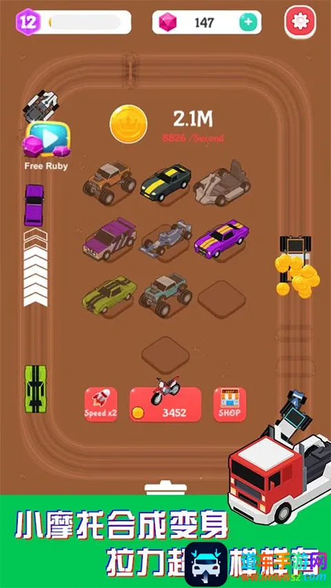 1. 核心合并机制:通过合并相同汽车打造更快更强新车型,感受从无到有逐步升级的满足。