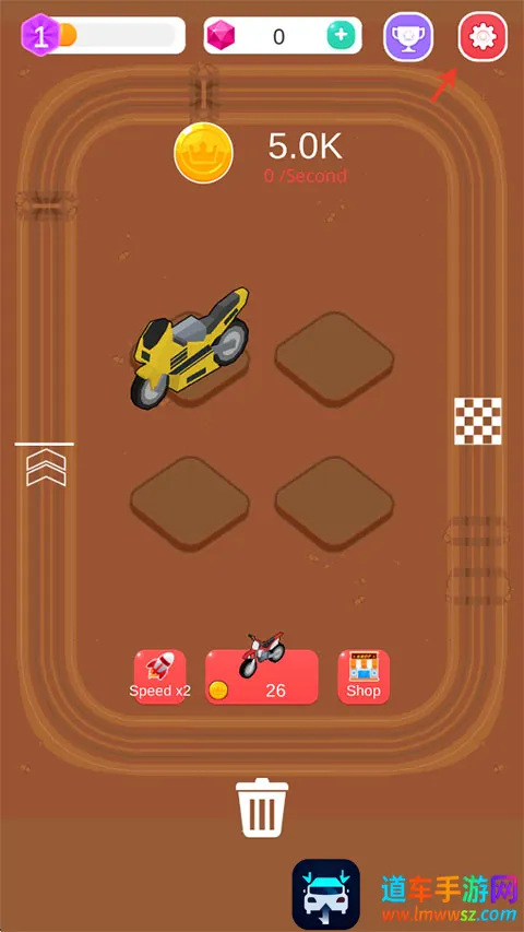 1、进入赛车大亨游戏内点击右上角的齿轮。
