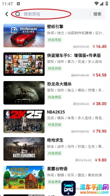 2、点击顶部搜索框,输入您想查找的游戏名称,快速精准定位目标游戏。