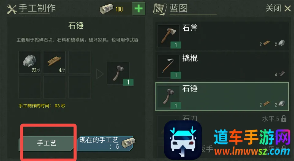 3、选择需要制作的物品,点击左下角【手工艺】开始制作。