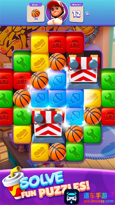 如果你想体验一场紧张刺激的冲浪者比赛,那就来试试这款游戏吧!它采用经典三消玩法,将相同颜色方块排列在一起消除,完成任务能获奖励并解锁更高难度关卡。点击主界面右下角Level按钮进入关卡挑战,每个关卡都有独特目标。胜利后可获蓝色星星奖励,用来升级主界面场景元素,升级进度达100还能解锁新主题场景。获取宝箱也有多种方式,比如升级玩家等级、通过一定数量关卡、让场景元素升级进度满100。游戏特色丰富,能与角色搭档破解谜题,连接粉碎方块充能,探索并装饰滑板天堂,组建团队赢取奖励,还有超强道具助你通关。而且拿起就玩,支持离线游戏,随时随地享受消除乐趣,无论是几分钟还是几小时,都能在闲暇时光尽情畅玩。