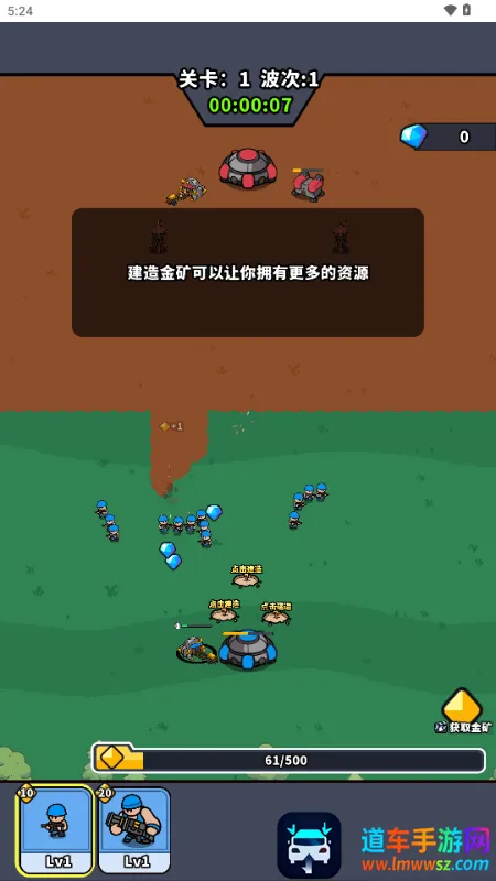 2. 以基地攻防为核心玩法,玩家通过建造金矿积累资源,搭建防御工事稳固防线,凭借画线操作召唤兵种出击,灵活包围或突袭敌军,玩法直观且富有策略性。