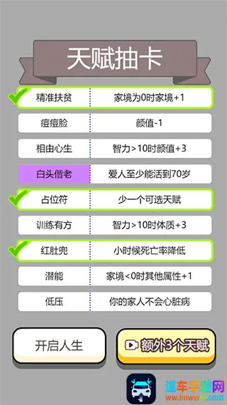 1、**自由选择人生**:玩家能自由挑选人生轨迹,开局可调节颜值、智力、体质、家境等,每次选择都影响后续事件发展,带来多样人生体验。