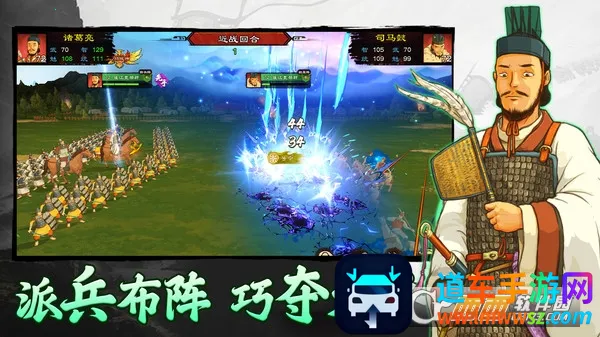 2. 手绘涂鸦,真实还原:采用独特手绘涂鸦风格,对兵种、服饰、武器、建筑等设计大量考究,精心绘制上百位三国名将形象,突出个人色彩。