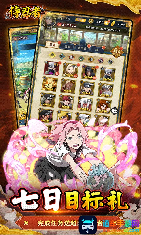 侍忍者是火影题材卡牌手游,上线送第七班礼包等。超百位忍者可自由搭配阵容,还有试炼等玩法。有多种福利,如登录送豪礼、充值0.05折等,让玩家体验原汁原味火影世界,感受热血历程。
