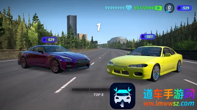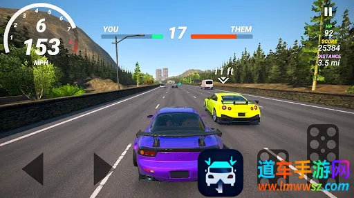 4、赛车中需要和对手进行较量,在拥挤的公路上看看谁跑得更快。