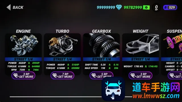 1、首先可以在车库中挑选一辆喜欢的车购买,之后点击TUNING。