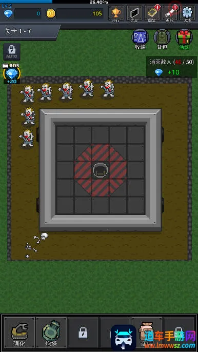 种植炮塔是一款策略塔防游戏,设定在丧尸末日世界。玩家要在被感染区域建立并升级机械堡垒,部署炮塔抵御敌人。防御成功可获资源,用来解锁新炮塔、强化堡垒及提升角色技能。