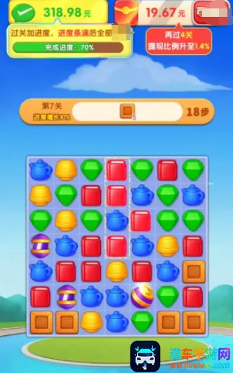 3、特色机制设计:方块换位机制,通过交换相邻方块位置触发消除;消除与补位逻辑合理,消除后上方方块下落填补空位,还可能生成新方块;关卡有明确目标和步数限制,通关还有丰厚奖励,考验你的策略规划能力。