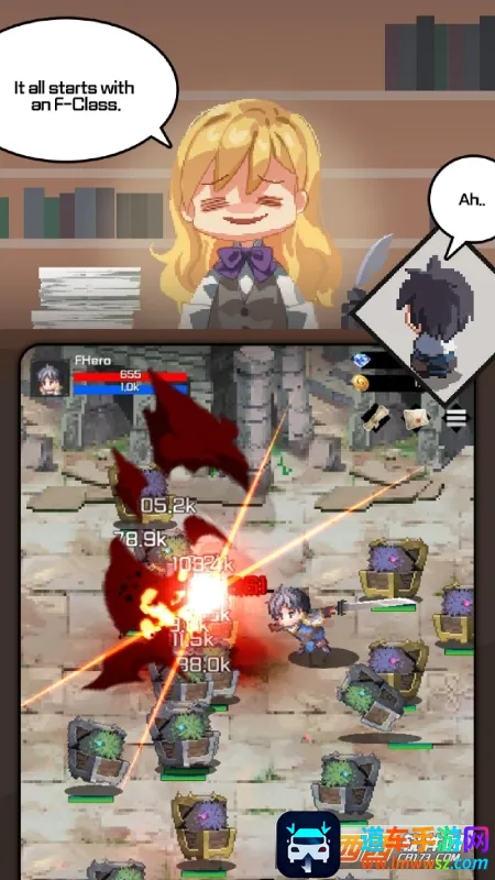 F级冒险家是一款像素风勇者冒险RPG手游,有放置刷怪轻松玩法,可挂机升级攒金、提升属性、解锁玩法。能自由收集搭配装备技能宠物,还有多种特色玩法,如试炼玩法等,支持离线成长,可轻松切换中文。