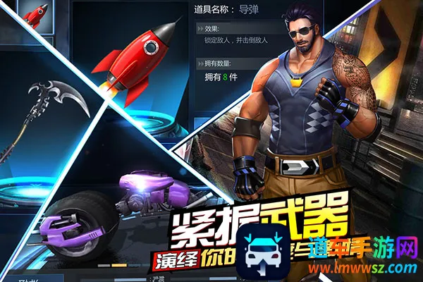 丰富摩托与道具:提供各种各样的摩托车供你选择,还能不断对摩托车升级提升实力。游戏中有丰富道具,可拾取装备丢给其他玩家,增加游戏趣味性。